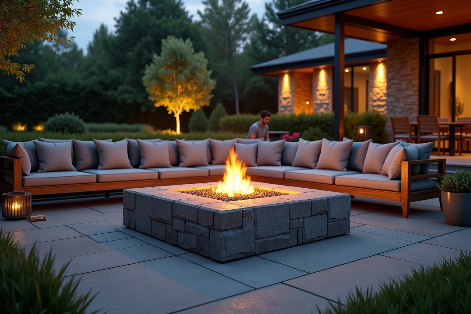 - Feuerstelle mit Sitzgelegenheit: Eine Kombination aus Feuerstelle und integrierten Sitzbänken schafft einen einladenden Treffpunkt.