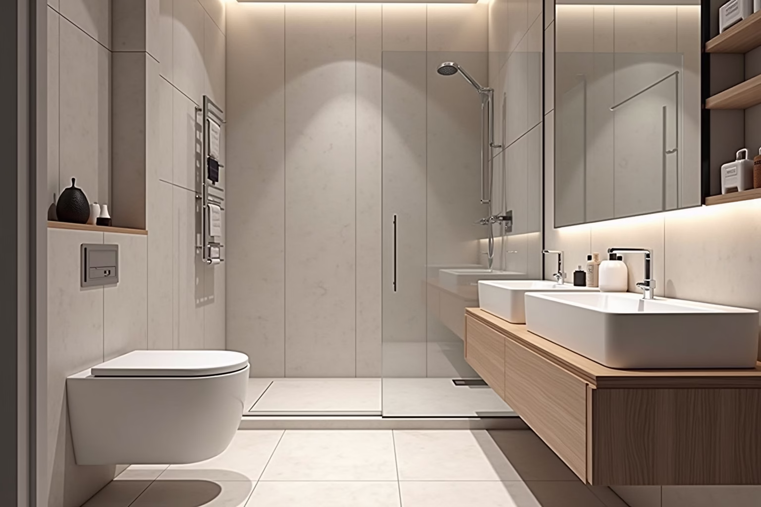 Hänge-WC: Es spart Platz und lässt den Raum größer wirken, da der Boden unter dem WC frei bleibt. Außerdem ist es leichter zu reinigen.