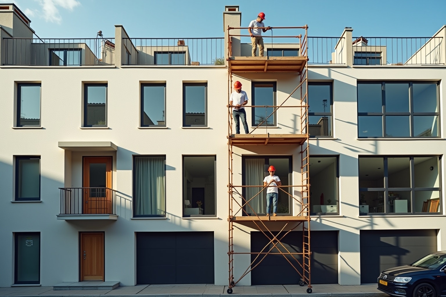 Nach den Rohbauarbeiten folgen die Ausbauarbeiten, bei denen dein Reihenhaus den letzten Schliff erhält. Dazu gehören beispielsweise: